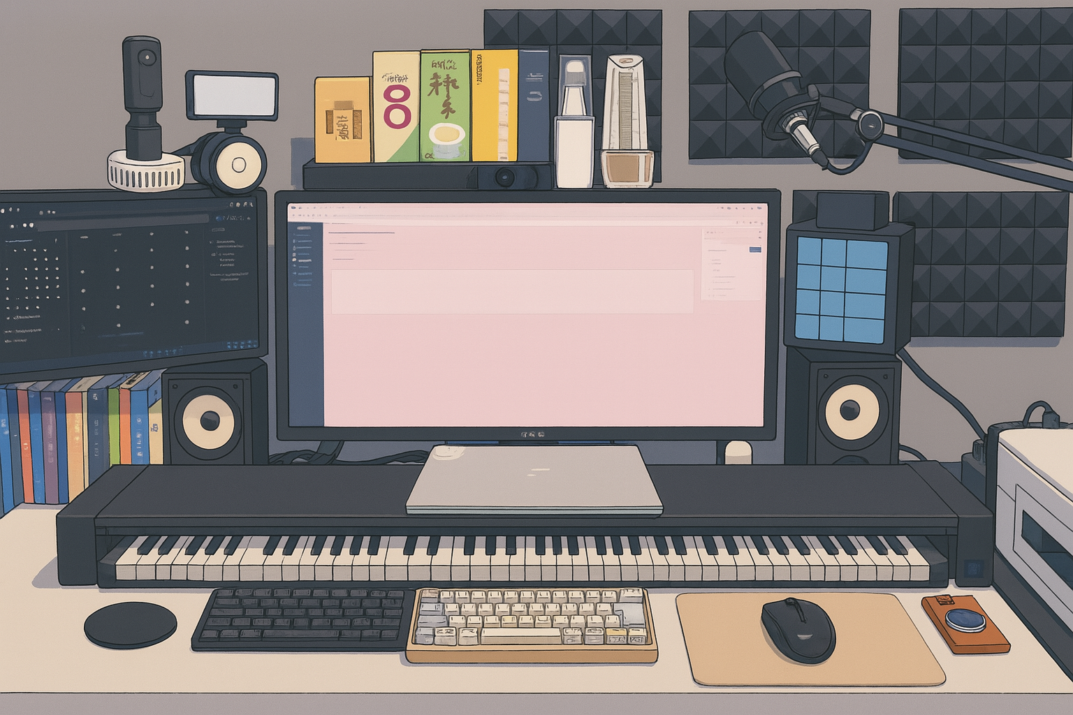 リモートワーク用の机が邪魔なので、仕事用PCを普段の机に移動し、普段使いPCのデバイスを共用することにした。というわけでUSB切換器というものを注文。このHHKBとマウスを共用する。ピアノ鍵盤の上のノートPCが仕事用。・・・しっかしCopilotのフォトレタッチ、、下手くそだなぁ。左のキーボードはフルの左半分しかない分割キーボードなんだけど。会社PCのセキュリティが緩ければデバイスはネットワーク共有で良いんだけどね。