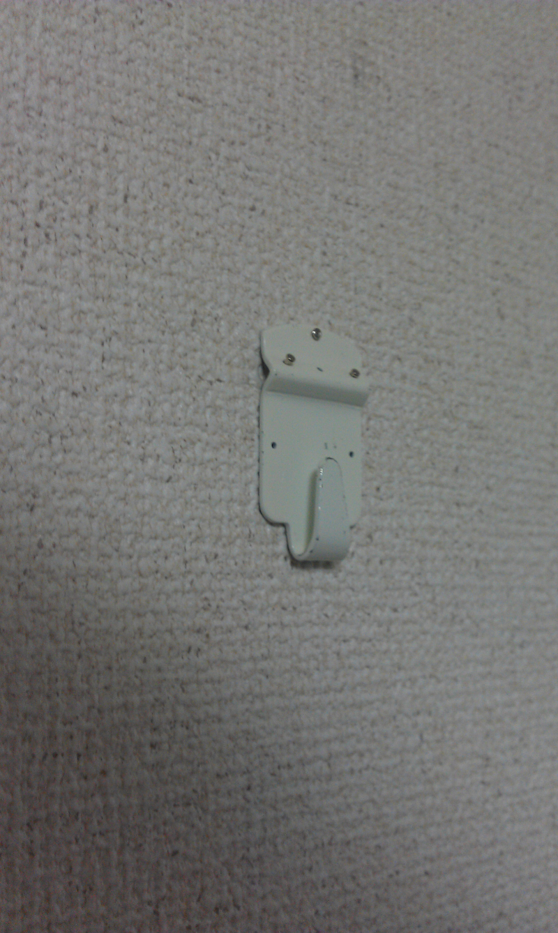 ダーツボード設置用に伸縮ポールとかメッシュパネルとか注文したんだけど、届くまで待てないから間に合わせで設置してしまった。ホームセンターで200円くらいで売ってる”何かを引っかけるやつ”を壁に釘付け。10kgの重量に耐えるんだよ(と書いてあった)。ダーツボードなんて5kg程度なんだよ。賃貸だからネジ止めとかは嫌だけど、これの細釘なら画鋲程度の穴しか開かない。斜め下に釘を打てるタイプのが良い。ちなみにボードを傾けずに設置するためにトンカチで少し潰してある。