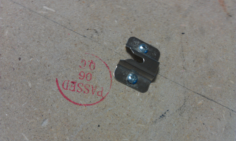 本来は壁側につけるコレをダーツボード側につける。たった200円で10kgの重量に耐える小さなイカしたやつに引っ掛けるんだよ。
