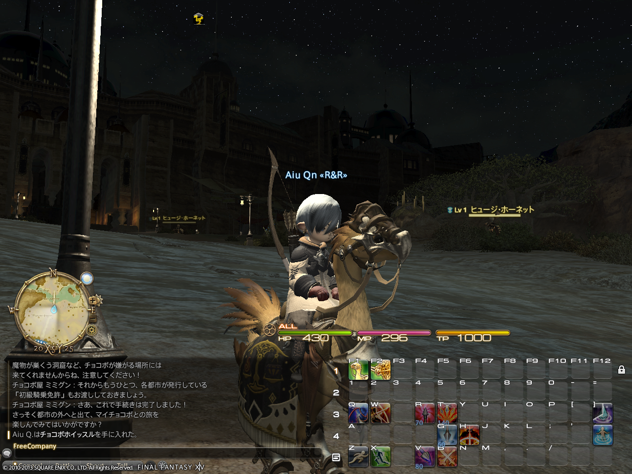 なんだか長かったけど、やっとマイチョコボ。なんかのパッケージ買ってたからクァールは持ってたけど、マイチョコボ持つまではクァールも乗れない仕様。とりあえずチョコボと一緒に乗り回したった。てかレガシーチョコボもほしかった(レガシープランの権利まであと一歩足りなかった)。とりあえずFate回してガッツリ上げてくぞ。