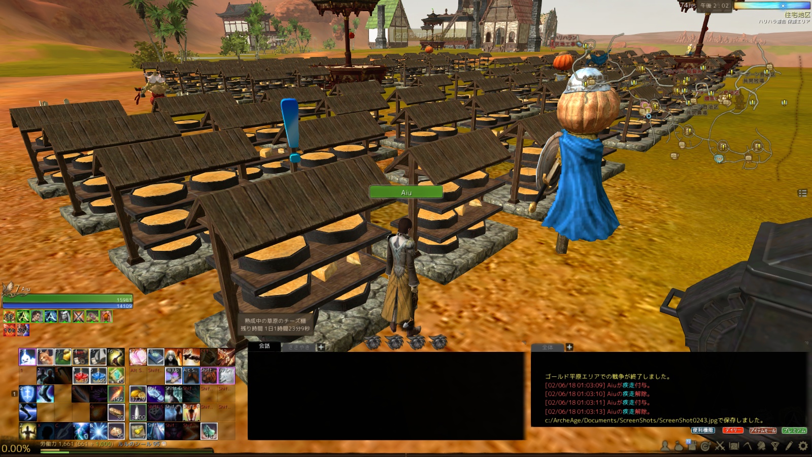 今は熟成チーズを毎日32個運んでいるけど全部オクってるわけじゃなくて、どのくらいか分かんないけど結構、労働使ってどうにかしてるから特産より低いわけないと思ってるんだけど。でも熟成メインで貿易しようってのは時間使うし労働も使うしで無謀そう。特製肥料の材料を全部オクで揃えて毎日32個運びつつ熟成チーズの材料を暇つぶしにそろえて32個分できたらいっきに作って運ぶ。暇があれば特製肥料の材料も自分で作る。これが良いな。