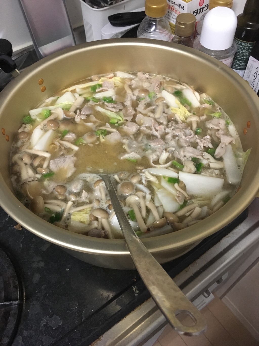 豚汁作るにも鍋が小さくて苦労してたので、でかいの買ってきた。前回と同じ具材を同じ量で作ってるけど余裕になった。26cmの鍋から30cmかな。ビフォーアフター。
